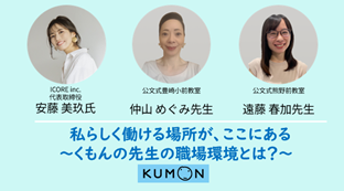 大学職員勤務時代、通勤に往復2時間。2度の産育休を経て勤務を続けるも、お子様の小学校入学を機にわが子と過ごす時間を増やしたいと考えるように。自宅近くで柔軟に働け、自身のやりたいことでもあった子どもたちの成長を長く見守れるくもんの先生にキャリアチェンジを決意。開設2年目を迎える現在は時間の使い方やキャリア形成などにもやりがいを感じている。